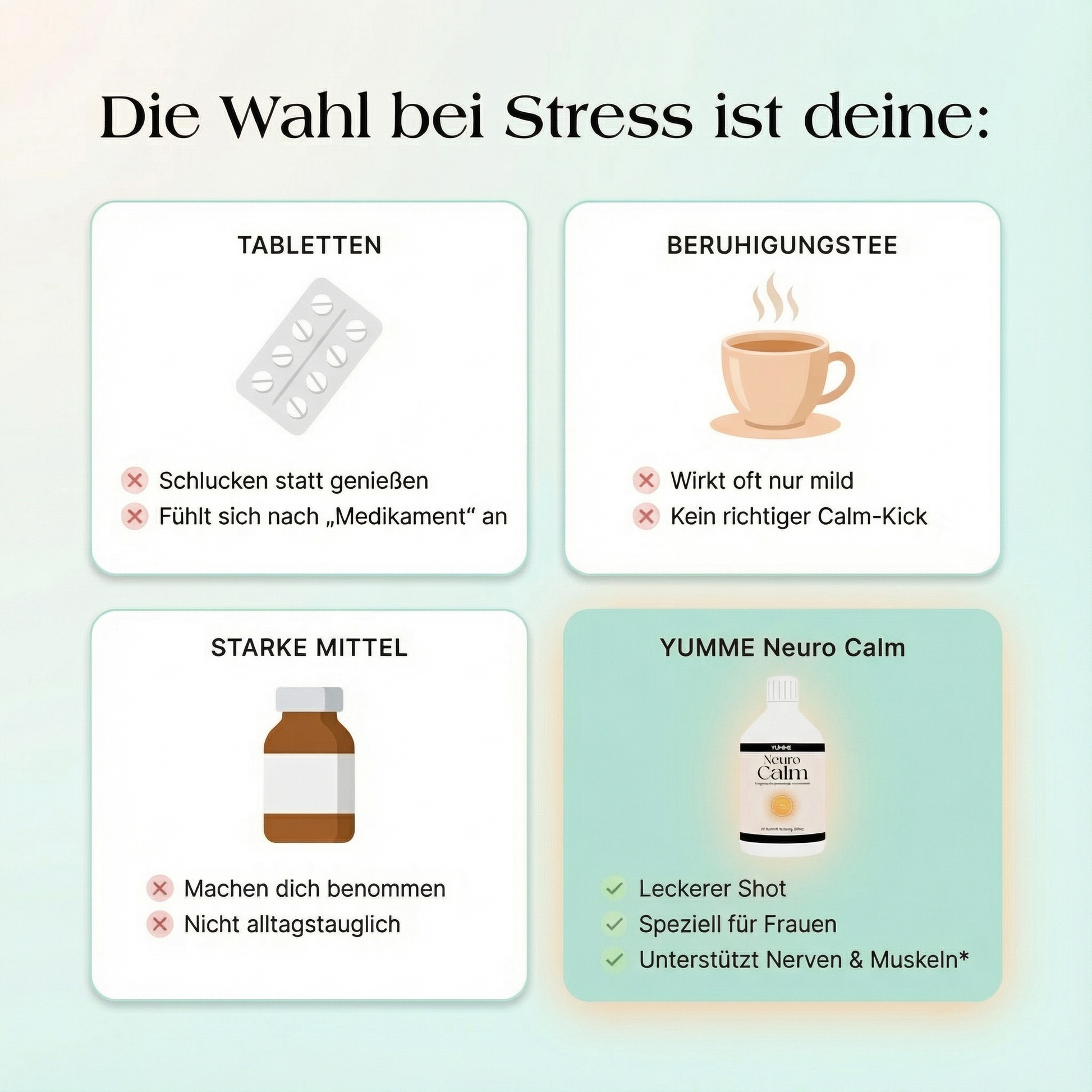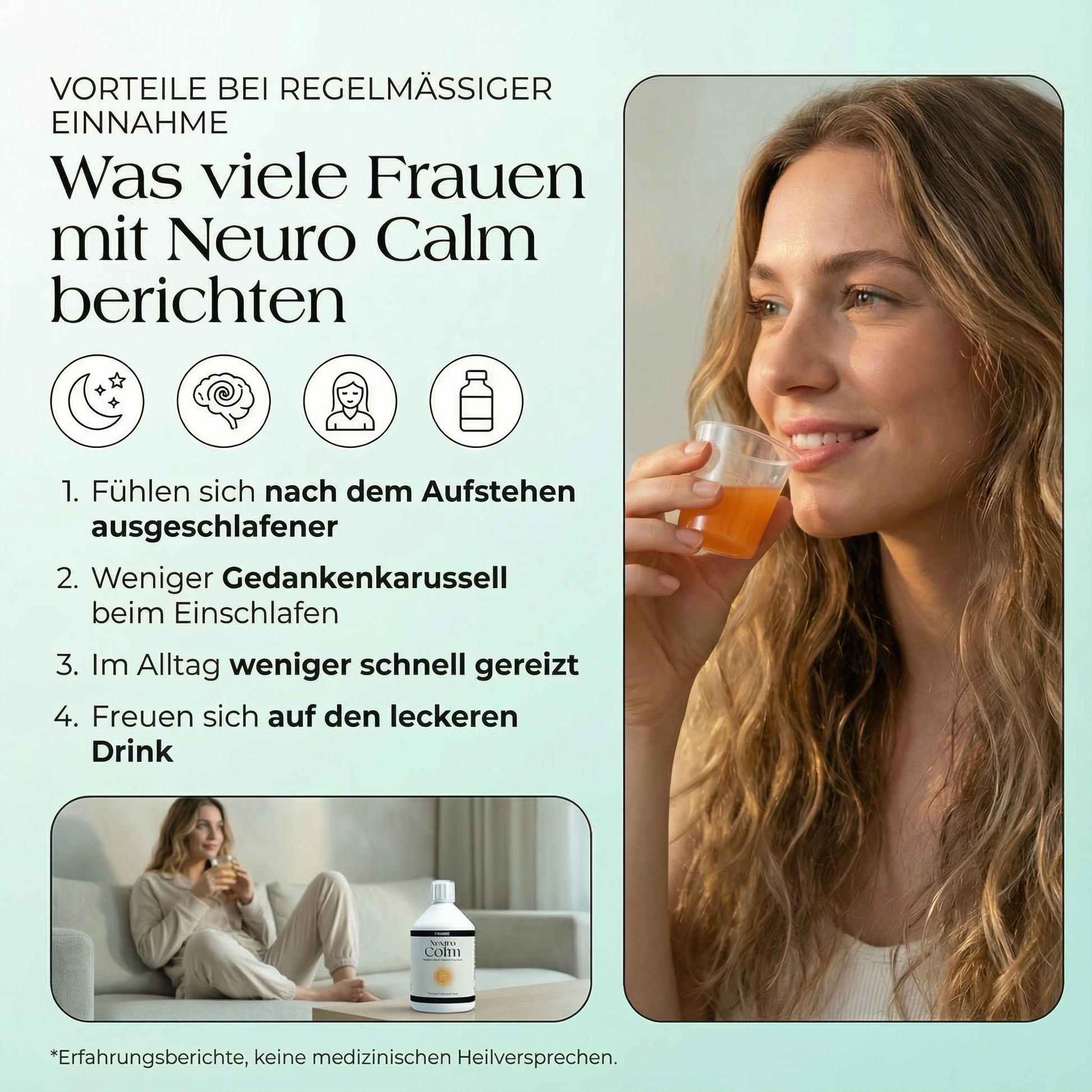 Mit Neuro Calm ist das komplett anders: Ich wache nachts seltener auf, schlafe schneller wieder ein und morgens gibt’s kein benebeltes Gefühl. Ich steh einfach auf und fühl mich klar im Kopf und ready für den Tag. Und geschmacklich ist’s auch echt lecker.